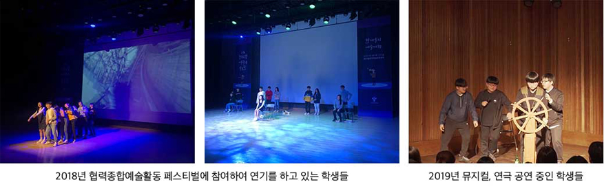 협력종합예술활동 수업에 필요한 아이디어를 얻을 수 있도록 뮤지컬, 연극, 영화에 관한 활동 안내서를 제작하여 보급하였고, 서울시 교육지원청(11개 지원청) 워크숍이나, 직무연수, 교육청 주관 발표회, 학교 간 교원학습공동체 지원 등을 통해 교사들이 수업에 대한 역량을 키울 수 있도록 하였습니다.(1) 협력종합예술활동 페스티벌: 뮤지컬·연극 분야 발표회